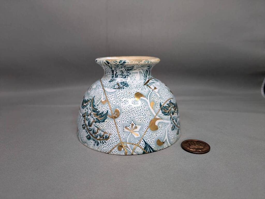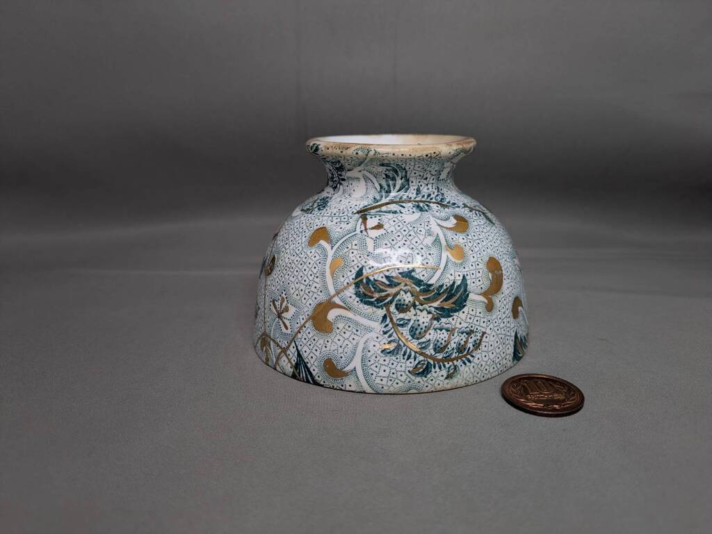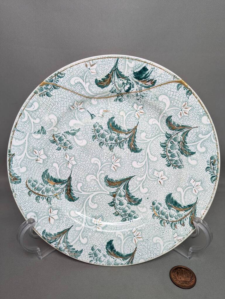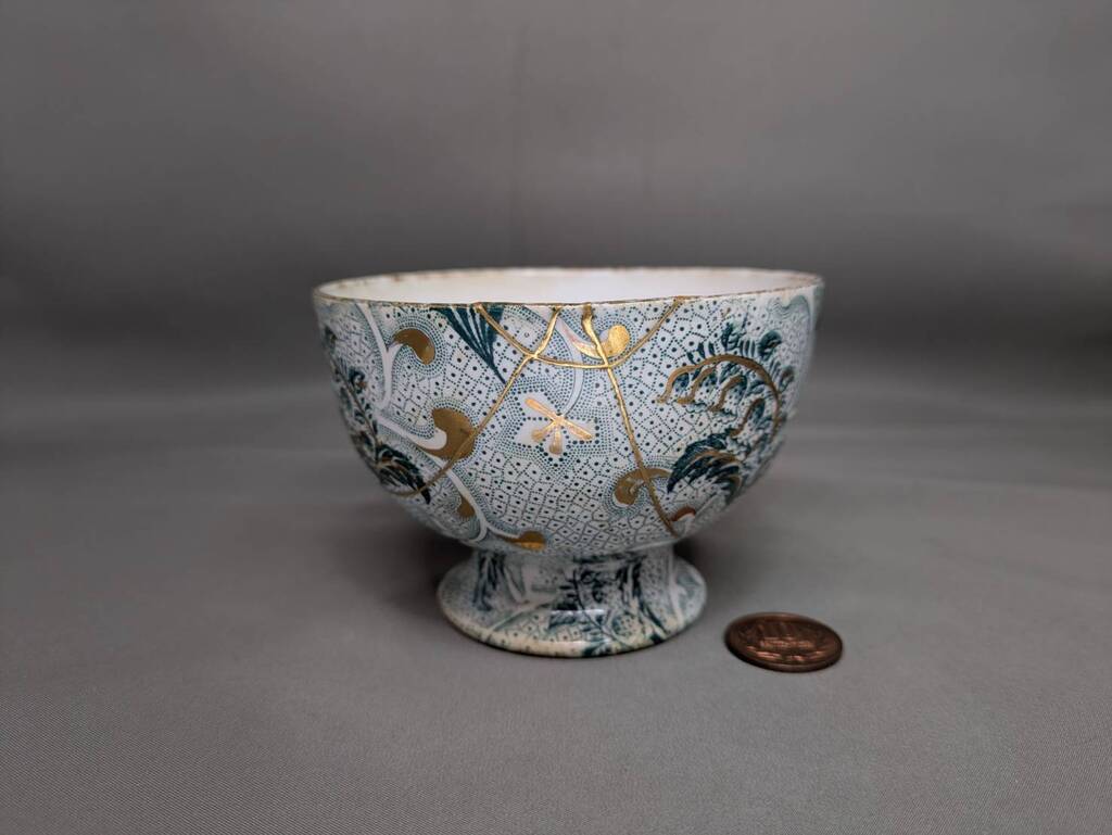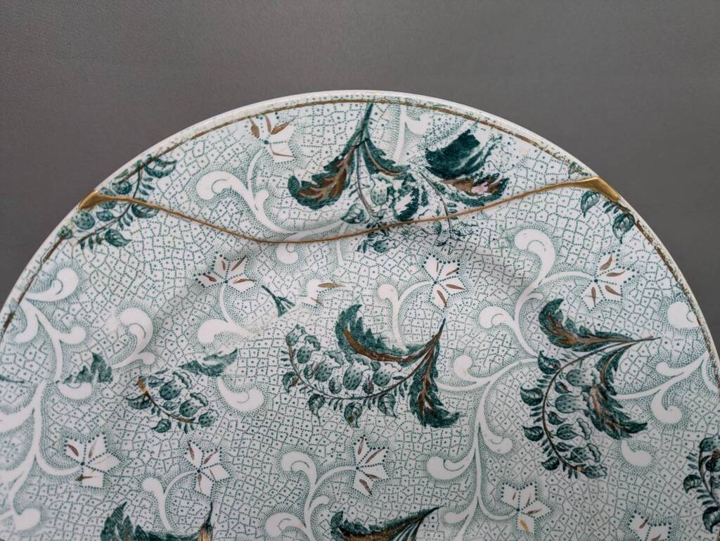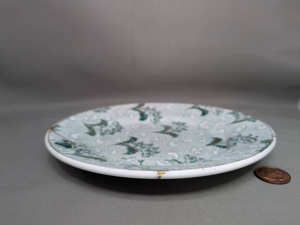 2点とも緑彩と金彩の上絵が美しい器ですので純金丸紛24K仕上げで蒔絵を施し修理をさせていただきました。元々金彩の上絵がある器なので違和感なく上品な仕上がりとなりました。